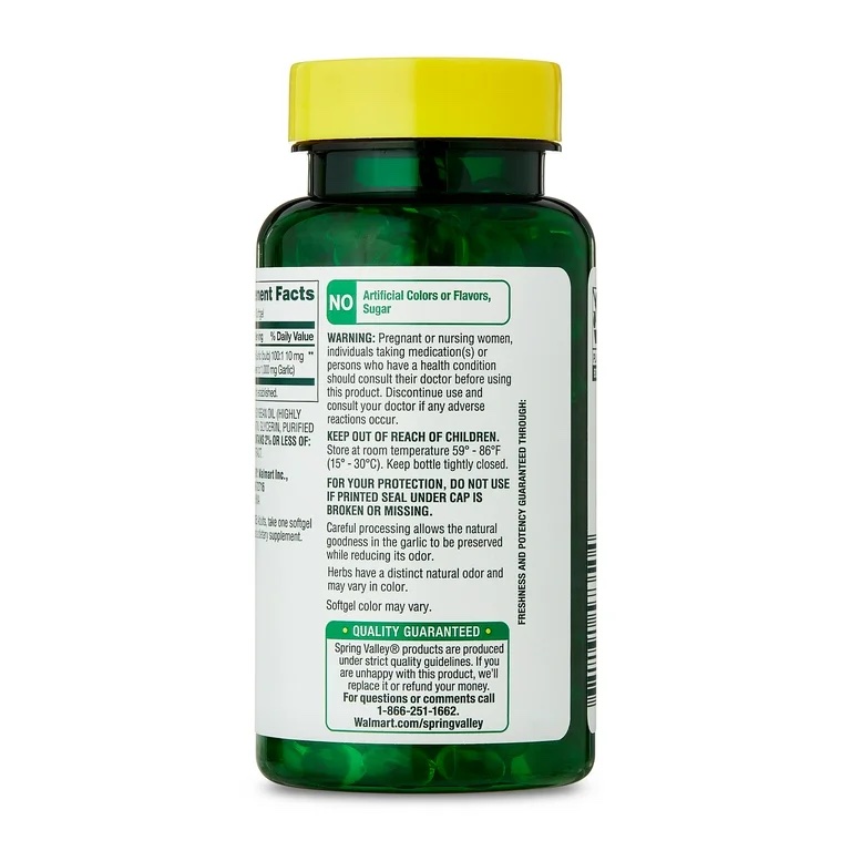 - Spring Valley Odor-Controlled Garlic Dietary Supplement Softgels for Heart Health, 1,000 mg, 120 Count