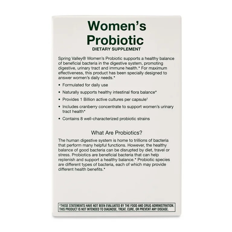 - Spring Valley Women’s Probiotic Dietary Supplement Vegetarian Capsules for Digestive Health, 30 Count